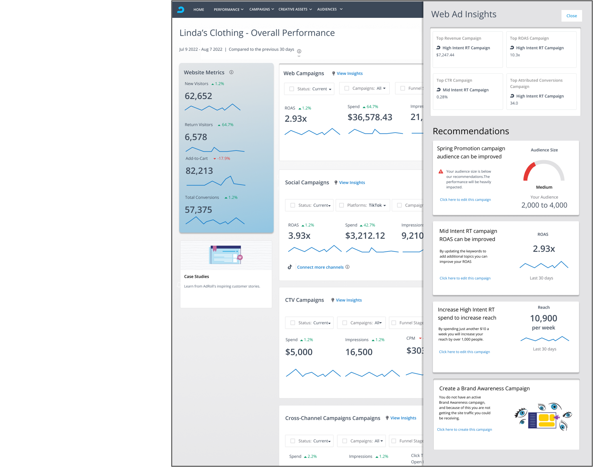 Worked with Product Management and Engineering to modernize and improve the AdRoll platform and integrate AI functionality to help customers
